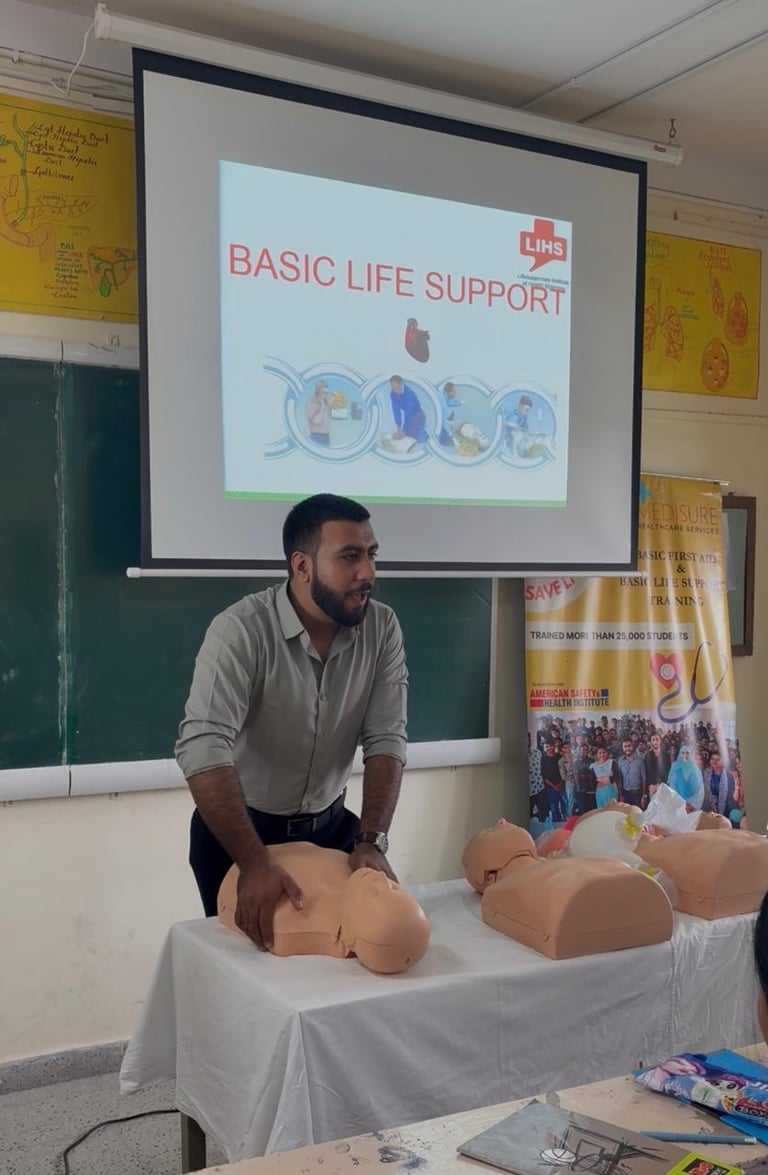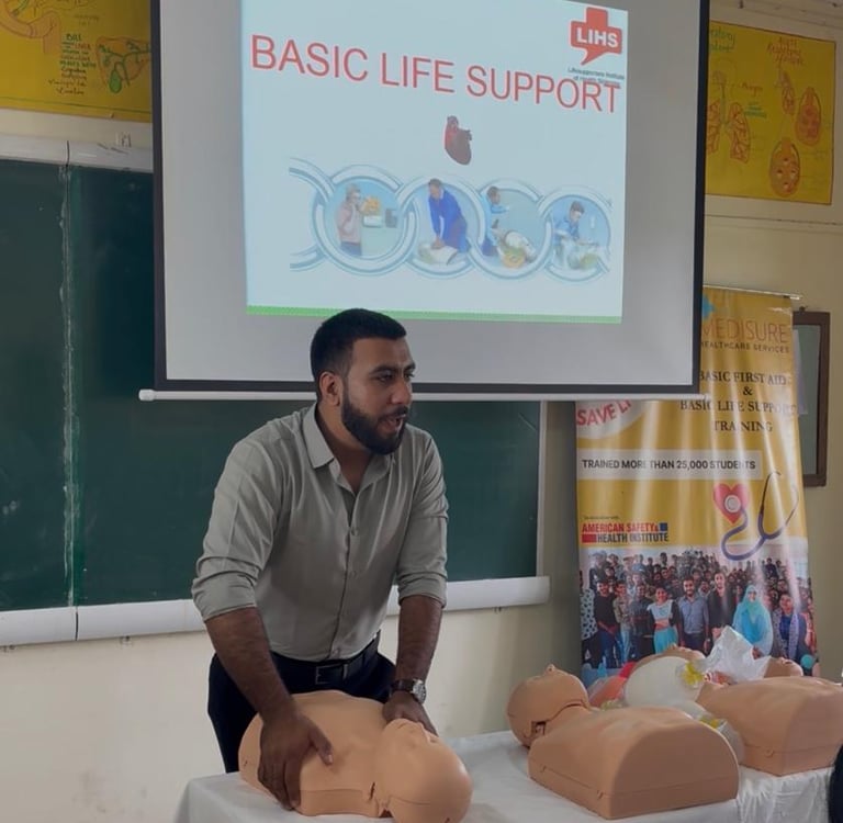 Medisure provides simulation-based, hands-on training for basic life support and advanced first aid for nursing, medical, paramedical, physiotherapy professionals, and students.