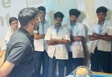 Its a two days Hands on training session, simulations for care of Cathether, Dead Body, Tracheostomy tube and other procedures.